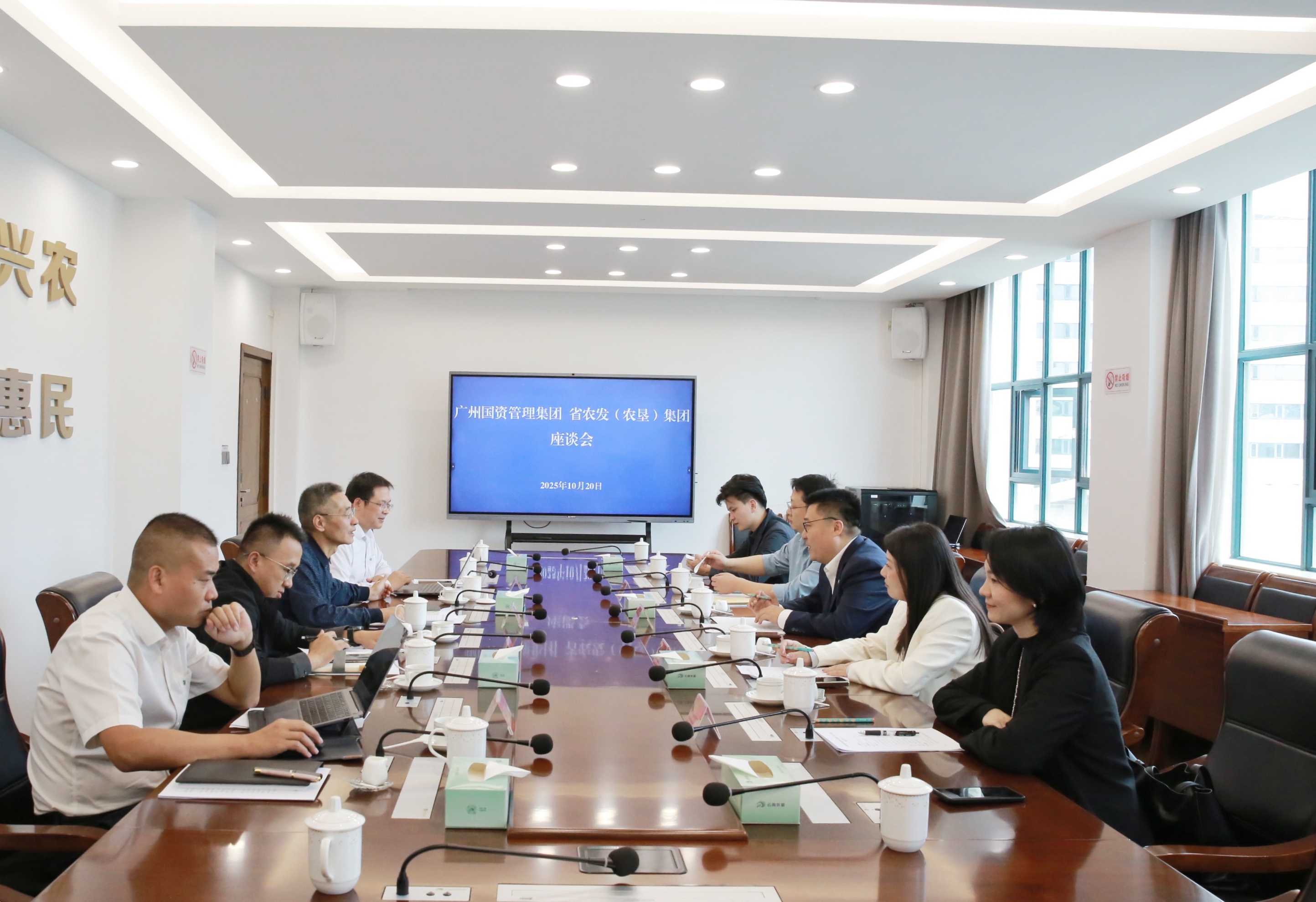 夏雨介绍了广州国资管理集团在类金融业务、物业产业、住宿酒旅行业的基础,以及承担的“老字号”品牌孵化运营和广州国资国企对外合作交流平台的建设情况。他表示,省农发(农垦)集团在农产品资源与品牌方面底蕴深厚,双方可在咖啡、茶叶等品类探索加盟与品牌共创,共同推动省农发(农垦)集团的优质产品拓展至粤港澳大湾区市场。广州国资管理集团在资产盘活方面具备一定经验,并积累了相对成熟的渠道,下步双方可以围绕存量资产盘活深化合作。希望双方建立常态化合作机制,以点带面,稳步推进合作项目扎实落地。